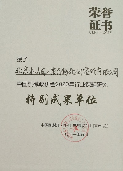 北自所被評(píng)為中國(guó)機(jī)械政研會(huì)2020年行業(yè)課題研究“特別成果單位”。