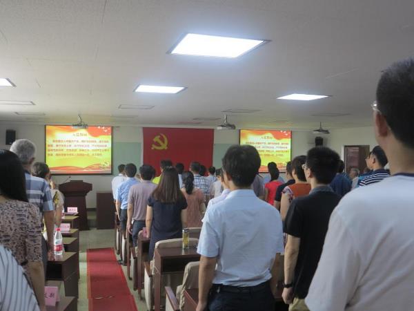 大會(huì)在莊嚴(yán)的國(guó)歌聲中拉開(kāi)序幕,6名新黨員在黨群部部長(zhǎng)王輝同志的帶領(lǐng)下面對(duì)黨旗莊嚴(yán)宣誓,與會(huì)人員全體起立,重溫了入黨誓詞。