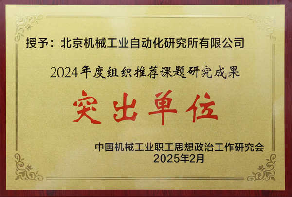 北自所榮獲了2024年度組織推薦課題研究成果突出單位,課題《科技型企業(yè)創(chuàng)新精神的傳承、發(fā)揚(yáng)和實踐研究》榮獲中國機(jī)械政研會一類課題研究成果。