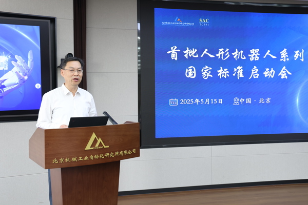 近期,由全國機(jī)器人標(biāo)準(zhǔn)化技術(shù)委員會(SAC/TC591)主辦的首批人形機(jī)器人系列國家標(biāo)準(zhǔn)啟動會在北京機(jī)械工業(yè)自動化研究所有限公司成功召開,共同聚焦人形機(jī)器人作業(yè)操作技術(shù)要求國家標(biāo)準(zhǔn)進(jìn)行廣泛深入交流研討。國家市場監(jiān)督管理總局標(biāo)準(zhǔn)技術(shù)司處長劉大山,國家標(biāo)準(zhǔn)化管理委員會原副主任殷明漢,工業(yè)和信息化部裝備工業(yè)一司主管科員祁航,雁棲湖基礎(chǔ)制造技術(shù)研究院(北京)有限公司黨委書記、董事長、總經(jīng)理肖承翔,全國機(jī)器人標(biāo)準(zhǔn)化技術(shù)委員會秘書長、北自所總經(jīng)理李金村等領(lǐng)導(dǎo)出席會議,來自宇樹科技、北京市人形機(jī)器人創(chuàng)新中心、北京航空航天大學(xué)等知名企業(yè)、高校及科研院所的專家參加會議。