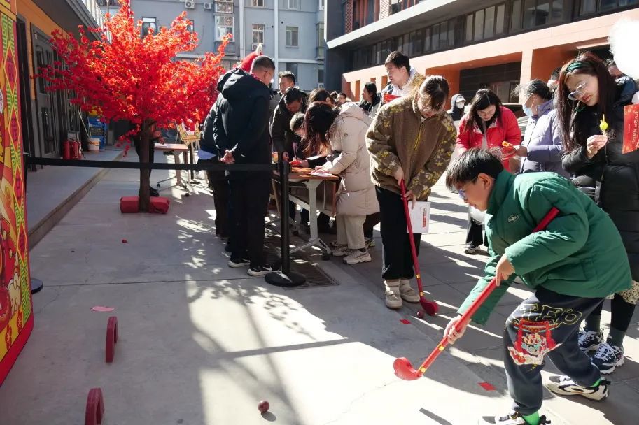 此次主題活動以沉浸式體驗傳遞傳統(tǒng)文化魅力,寫福字、剪窗花積攢“好福氣”,投壺、捶丸體驗非遺項目“好雅氣”,歡樂投籃、鐵環(huán)挑戰(zhàn)贏來“好運氣”,開心保齡球、騎行發(fā)電棉花糖為“好身體”補充能量,詩詞接龍、愿望樹下展示“好才氣”,歡歡喜喜猜燈謎迎來新年“好景氣”。每一個環(huán)節(jié)都讓人流連忘返,一張張笑臉寫滿喜悅。豐富多彩的傳統(tǒng)文化活動將歡樂熱鬧的氛圍點燃,營造了喜慶祥和的節(jié)日氣氛,展示出幸福美好生活的氣象,也奏響了新春奮發(fā)向上的序曲。